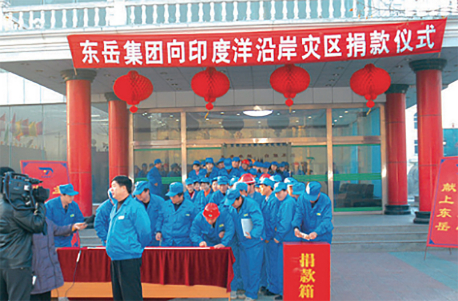 多年來(lái),東岳不僅為地方財(cái)政收入做出了重要貢獻(xiàn)并且積極從事各類公益事業(yè),集團(tuán)黨委積極參與“慈善一日捐”,在新冠疫情、“利奇馬”臺(tái)風(fēng)、印度洋海嘯、汶川大地震等重大自然災(zāi)害面前,東岳都積極捐款救災(zāi)。幾年來(lái),公司累計(jì)各類社會(huì)公益捐款近